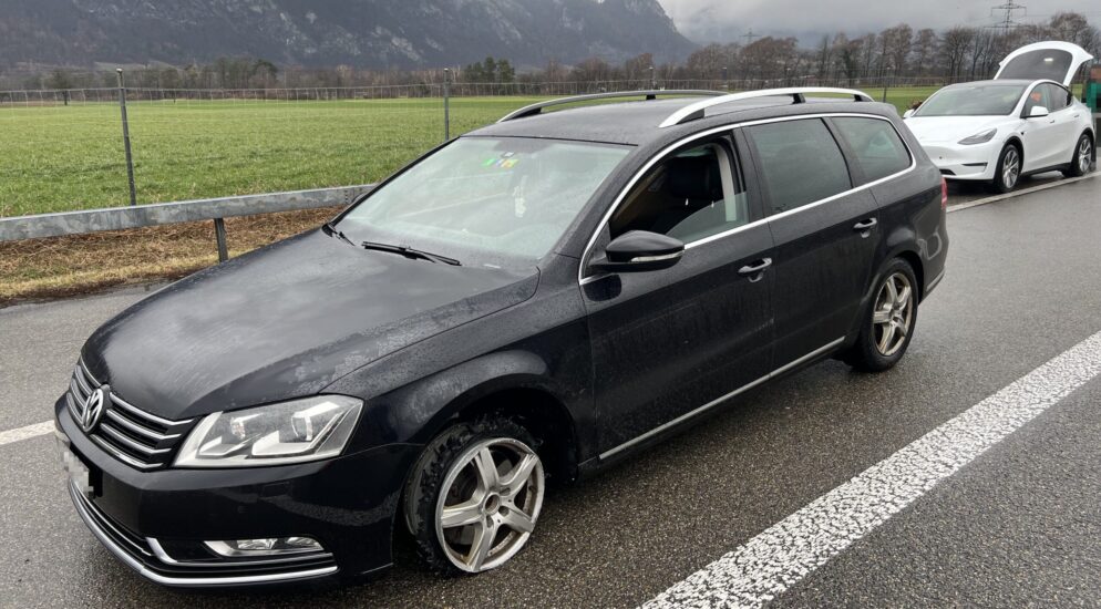 Am Sonntag (11.02.2024), kurz vor 8:30 Uhr, hat die Kantonale Notrufzentrale St.Gallen die Meldung erhalten, wonach ein Auto mit einem beschädigten Vorderreifen auf der Autobahn A13 zwischen Bad Ragaz und Sargans fahre.