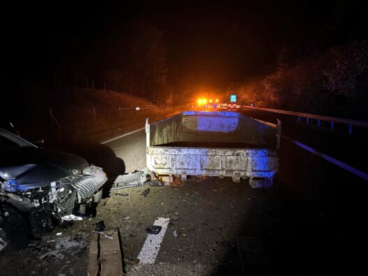 Um 19.15 Uhr am frühen Freitagabend (03.11.2023) musste eine 73-jährige Frau auf der H4 bei Bargen (Fahrtrichtung Deutschland) ihr Auto vor einer Baustellen-Lichtsignalanalage, die auf «rot» stand, anhalten. Als die Lichtsignalanlage auf «grün» wechselte, fuhr die Frau mit dem Auto – aus noch ungeklärten Gründen – auf dem eigentlich gesperrten Gegenfahrstreifen in die Baustelle ein und kollidierte dort nach rund 800 Metern mit einer abgestellten Baustellenmulde.