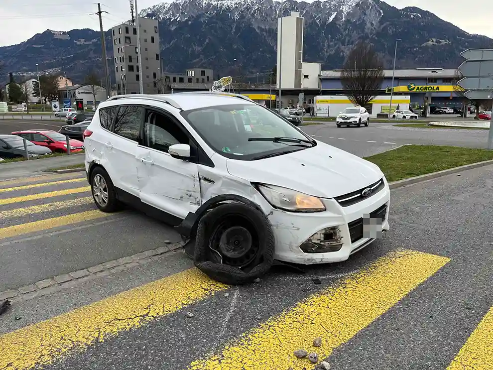 Der 23-jährige Mann fuhr mit seinem Auto auf der Rheinstrasse in Richtung Kreisverkehrsplatz Heldaustrasse. Auf Höhe der Brückenabfahrt Rheinstrasse verlor der 23-Jährige die Kontrolle über sein Auto. Dabei prallte das Auto rechts gegen die Leitplanke, fuhr weiter und überholte rechtsseitig das vor ihm stillstehende Auto. Beim Überhohlmanöver touchierte das Auto des 23-Jährigen erneut die rechte Leitplanke, wonach es sich drehte. Folglich touchierte das drehende Auto das zuvor überholte und stillstehende Auto. Nach der Kollision kam das Auto des 23-Jährigen auf der Fussgängerinsel zum Stillstand. Die beim 23-jährigen Mann durchgeführte Atemalkoholmessung ergab einen zu hohen Wert. Es entstand Sachschaden von mehrehren tausend Franken.