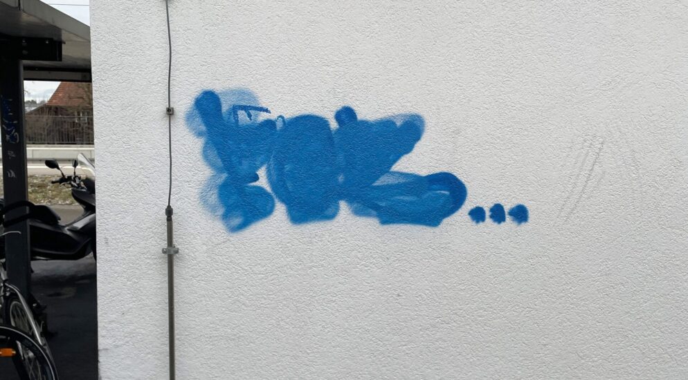 Gegen 16 Uhr beobachteten zivile Einsatzkräfte der Kantonspolizei Thurgau, wie ein Sprayer am Bahnhof diverse «Tags» mit blauer Farbe übersprayte.