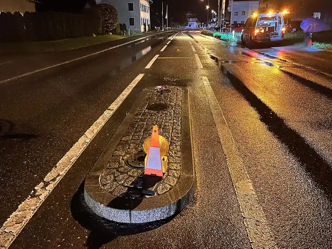 Am Dienstag (16.04.2024), kurz nach 21:30 Uhr, ist es auf der Staatsstrasse zu einem Selbstunfall mit einem Auto gekommen. Die 43-jährige Frau war in fahrunfähigem Zustand unterwegs. Es entstand Sachschaden von mehreren tausend Franken.