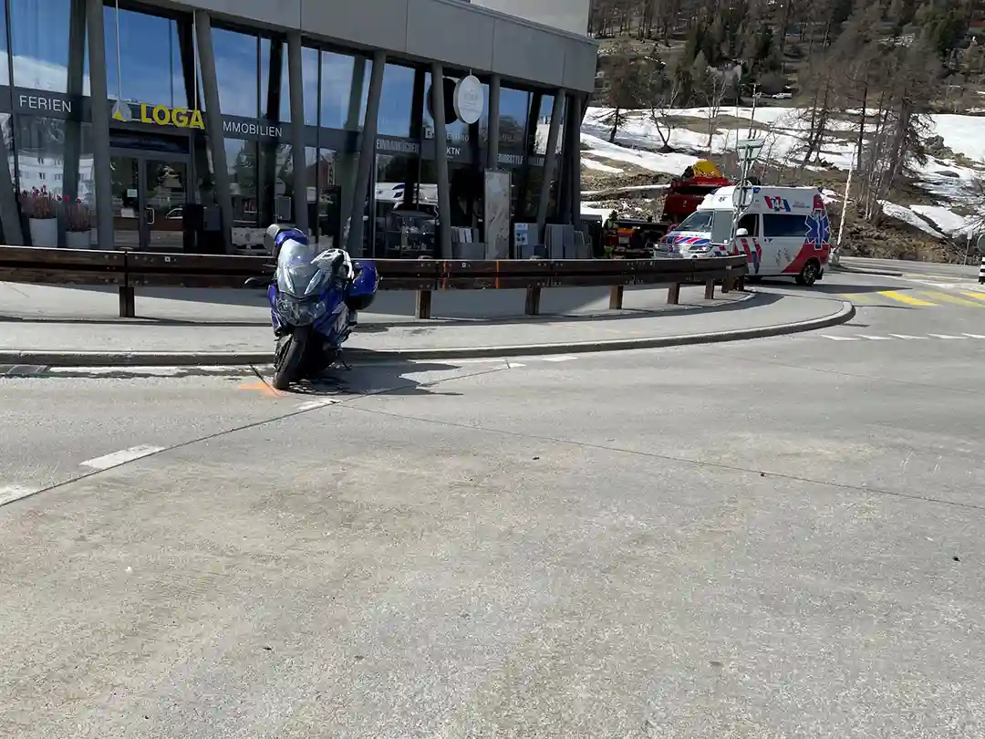 Am Sonntagnachmittag ist in St. Moritz ein Motorradfahrer in einem Kreisel gestürzt. Sein Sozius wurde leicht verletzt.