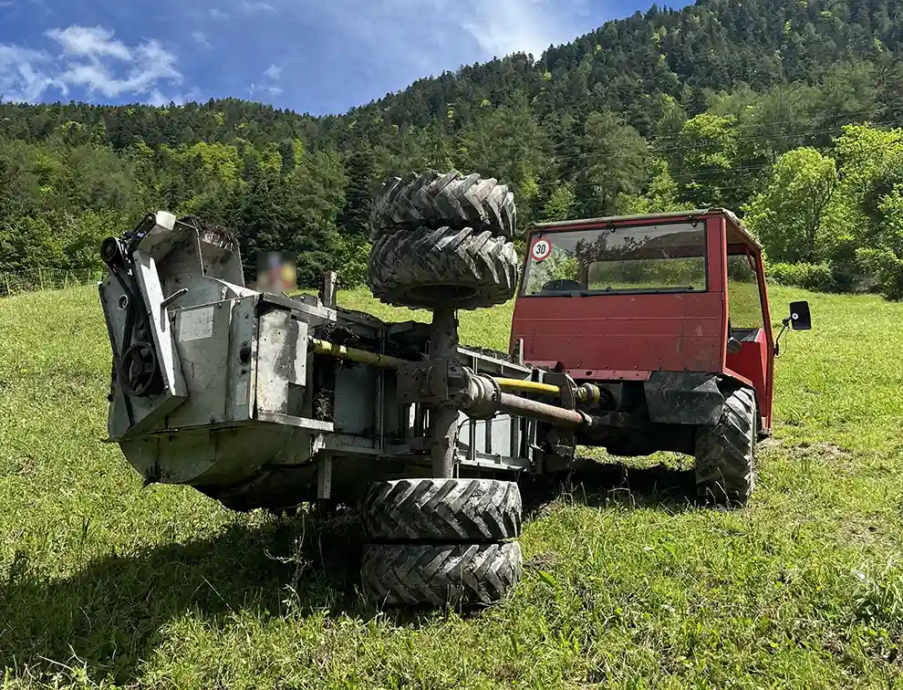 Ein 40-jähriger Mann fuhr mit seinem landwirtschaftlichen Motorkarren auf einem Privatweg in Richtung Flur Bonavidis. Er verliess den Privatweg auf die Wiese, um Mist auszubringen, welcher im Miststreuer geladen war. Dabei kippte der landwirtschaftliche Motorkarren nach rechts und drehte sich mehrmals um die eigene Achse. Anschliessend kam er nach einigen Metern hangabwärts zum Stillstand. Der 40-Jährige wurde dabei unbestimmt verletzt. Er wurde von der Rega ins Spital geflogen. Es entstand Sachschaden von mehreren tausend Franken.